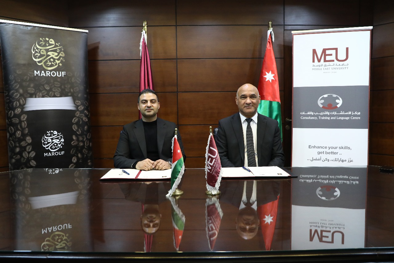 وقّع مركز الاستشارات والتدريب واللغات في جامعة الشرق الأوسط اتفاقية تعاون استراتيجي مع شركة معروف للصناعات الغذائية، تهدف إلى تأسيس برنامج متكامل للتدريب والإشراف الفني، يُسهم في تمكين الطلبة وتأهيلهم للدخول إلى سوق العمل بكفاءة عالية.