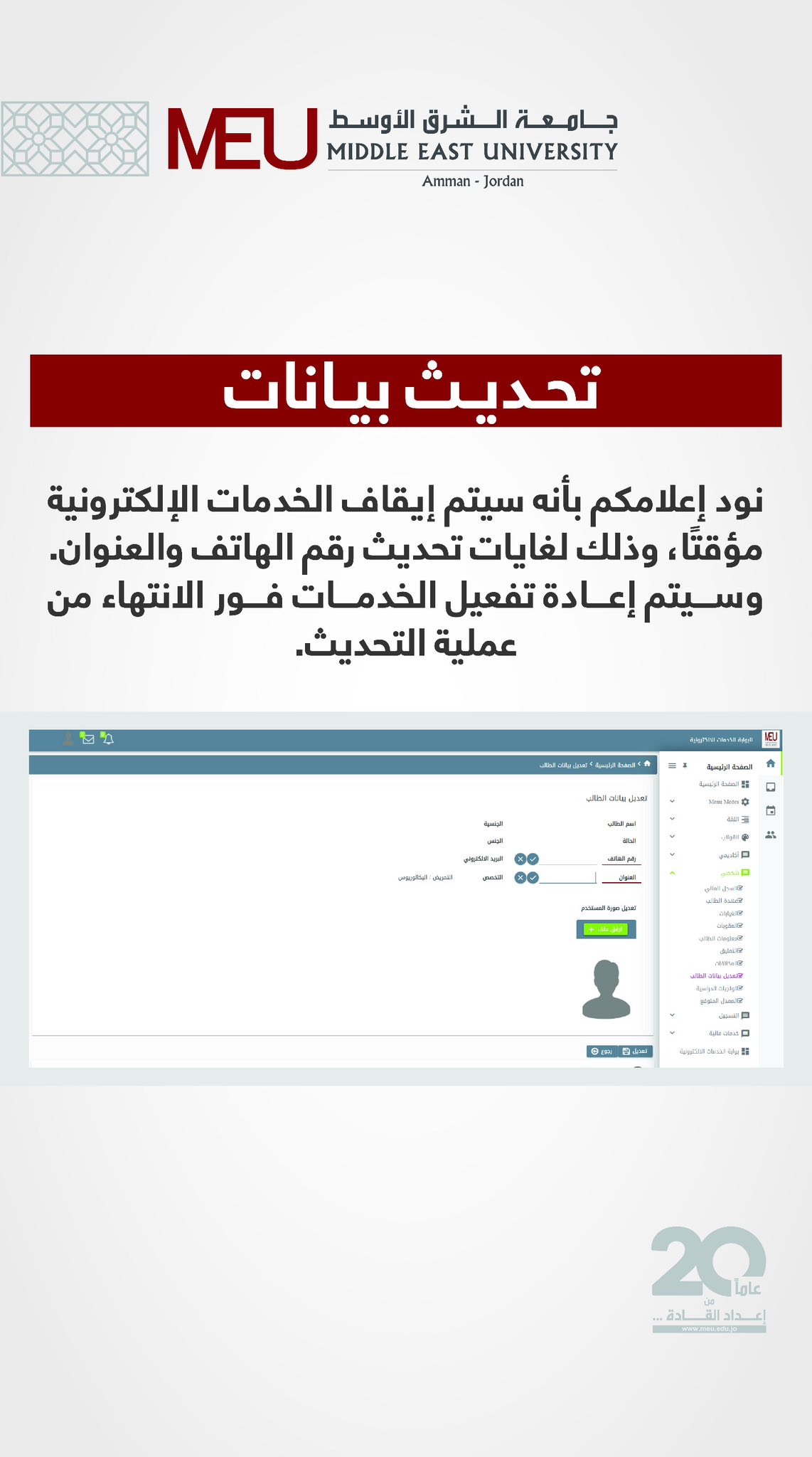 اعلان هام - Middle East University