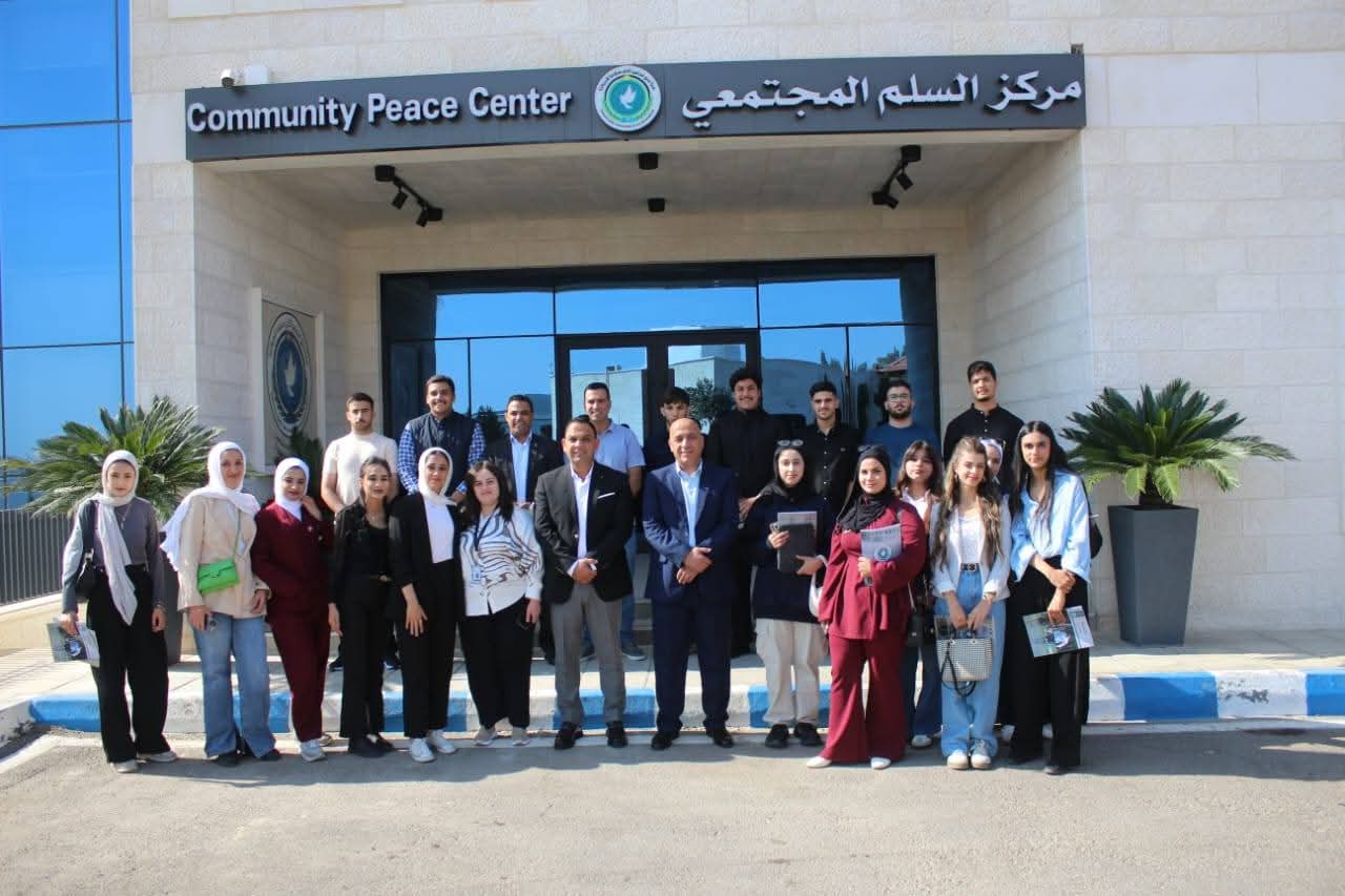 نظمت شعبة الأنشطة الحزبية بالتعاون مع نادي السلم المجتمعي في عمادة شؤون الطلبة بجامعة الشرق الأوسط، زيارة ميدانية إلى مركز السِّلم المجتمعي التابع لإدارة الأمن الوقائي، بهدف تعزيز التواصل مع مؤسسات الأمن الوطني وترسيخ مفاهيم السلم والأمن المجتمعي بين طلبة الجامعة.