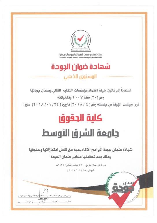 شهادة ضمان الجودة (المستوى الذهبي) لجامعة الشرق الأوسط