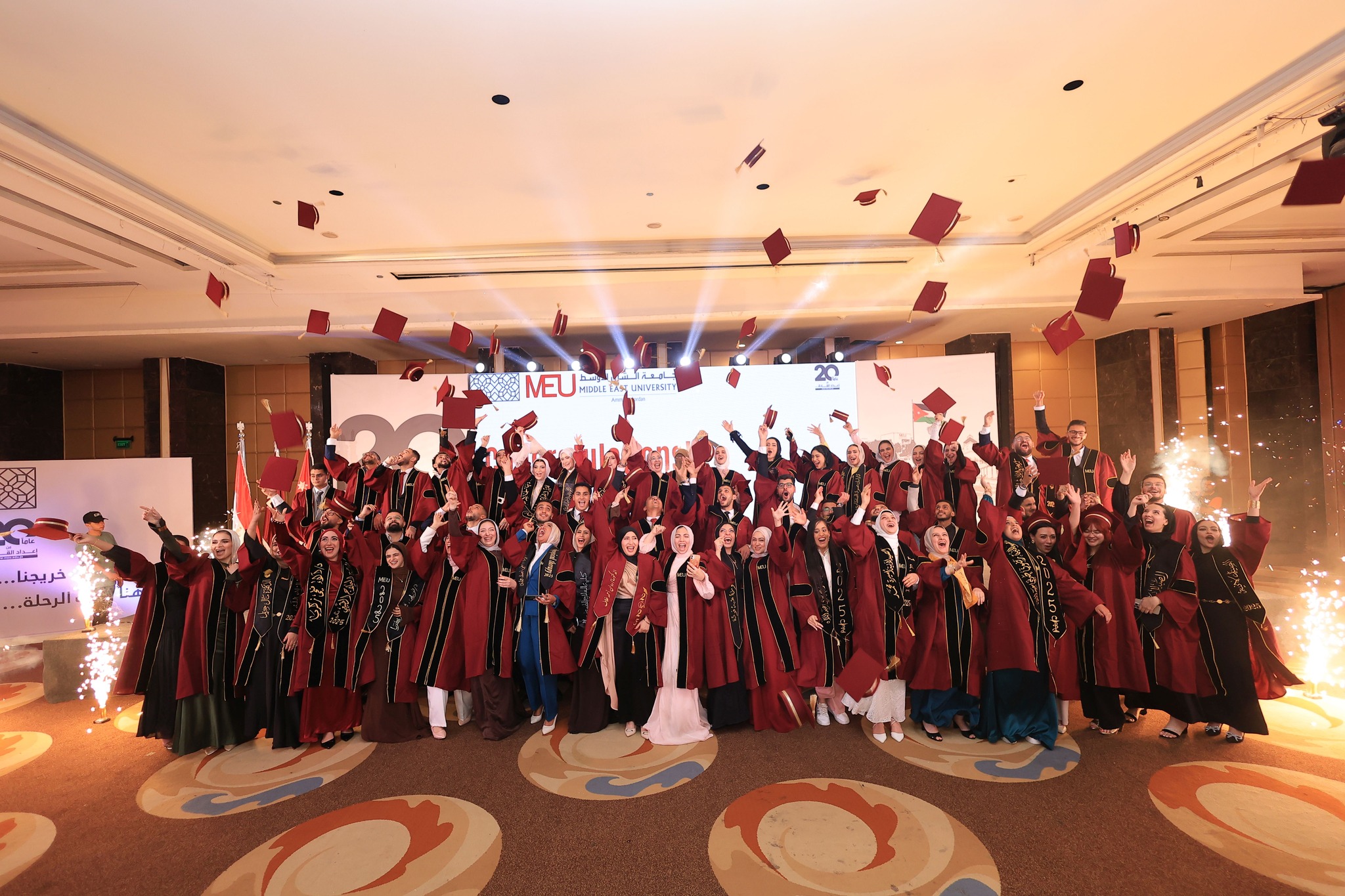 في أجواءٍ تغمرها مشاعر الفخر والاعتزاز، أقامت جامعة الشرق الأوسط حفلَ تخريجٍ مهيب لعددٍ من طلبتها المصريين في العاصمة المصرية القاهرة، بحضور نخبة من الشخصيات الرسمية والأكاديمية، وجمعٍ كبيرٍ من أهالي الخريجين وذويهم.