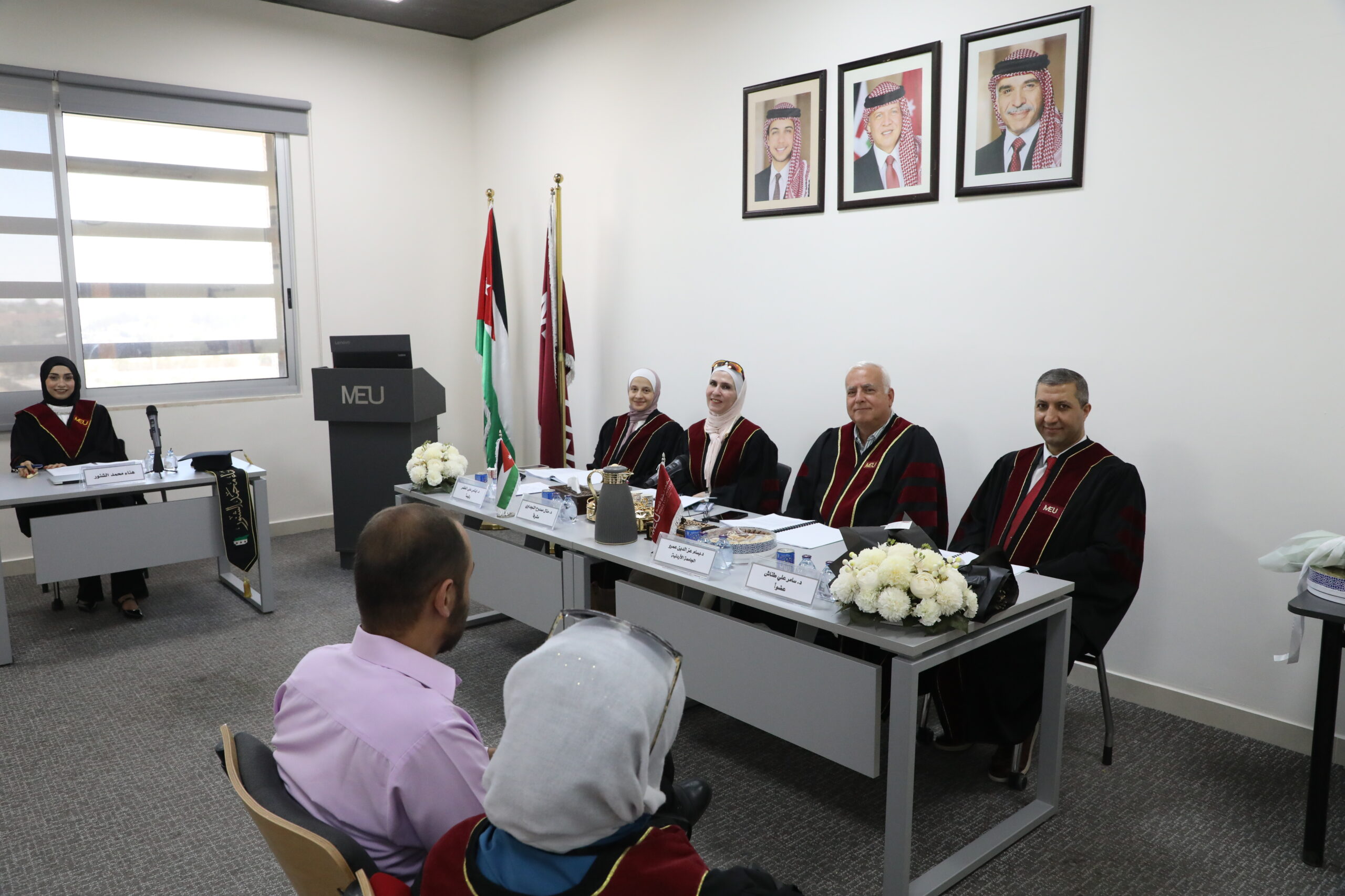 تشكلت لجنة المناقشة من الدكتورة إيناس الخضر عضوًا ورئيسًا، والدكتورة منال النجداوي مشرفًا رئيسًا، والدكتورة سهى أبو دولة مشرفًا مشاركًا، والدكتور سامر طناش عضوًا، والدكتور بسام عز الدين عمرو عضوًا من خارج الجامعة (الجامعة الأردنية).