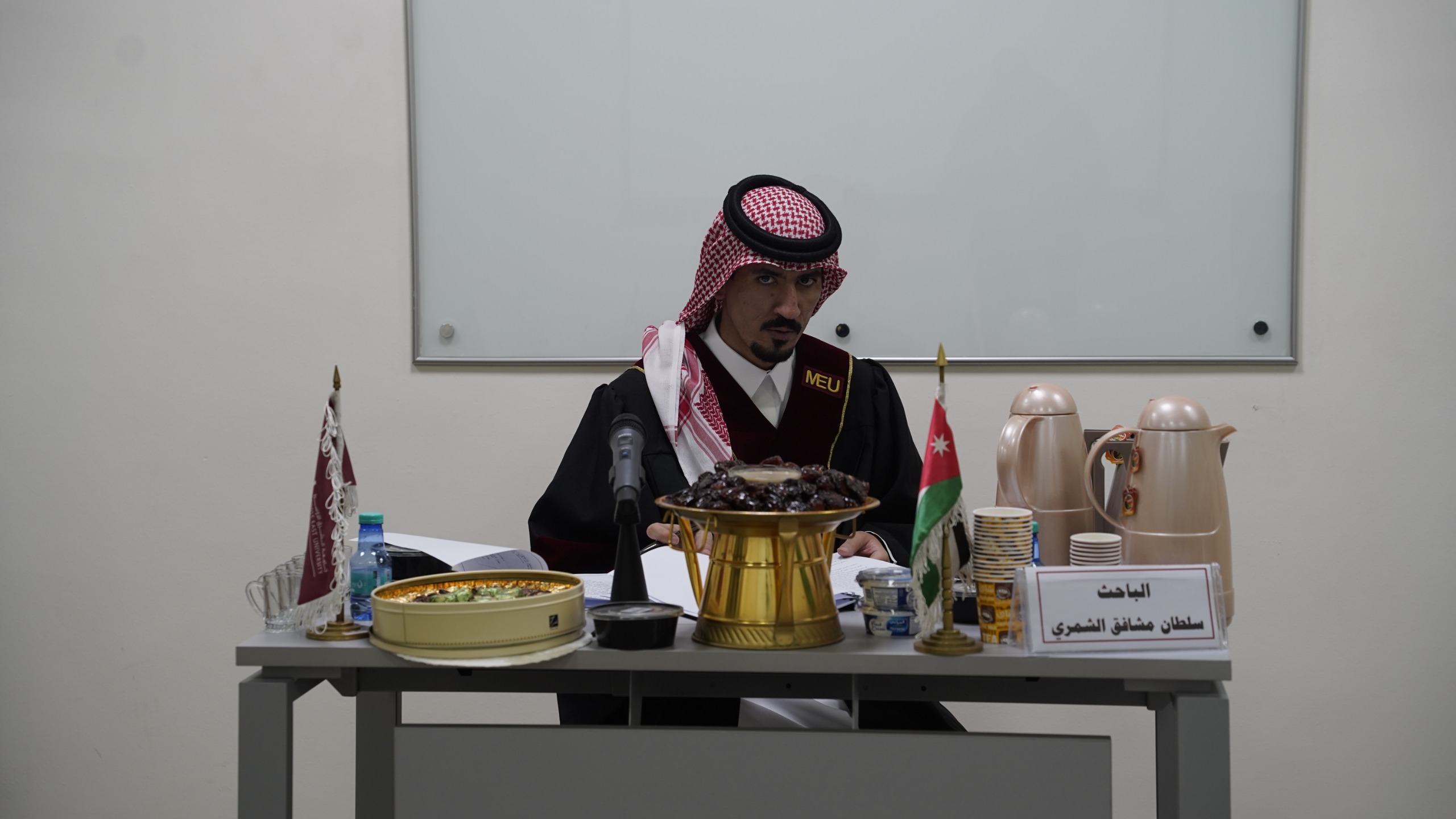 تشكلت لجنة المناقشة من الأستاذ الدكتور أحمد صالح عضوًا ورئيسًا، والدكتور مراد عطياني مشرفًا، والدكتور ليث خريس عضوًا، والأستاذ الدكتور مروان محمد النسور عضوًا من خارج الجامعة (جامعة البلقاء التطبيقية).