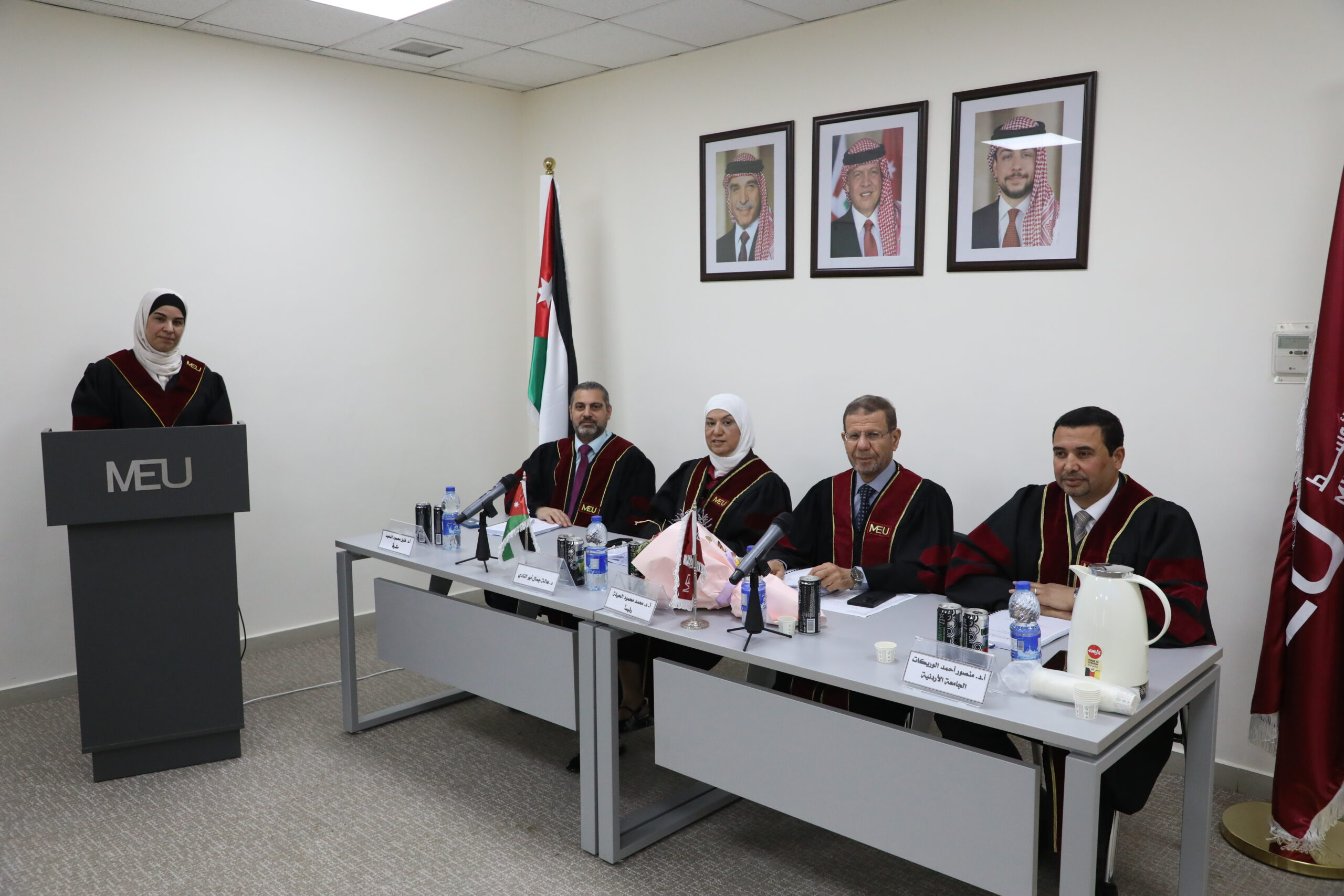 تشكلت لجنة المناقشة من الأستاذ الدكتور محمد الحيلة عضوًا ورئيسًا، والأستاذ الدكتور خليل السعيد مشرفًا، والدكتورة هالة أبو النادي عضوًا، والأستاذ الدكتور منصور أحمد الوريكات عضوًا من خارج الجامعة (الجامعة الأردنية).