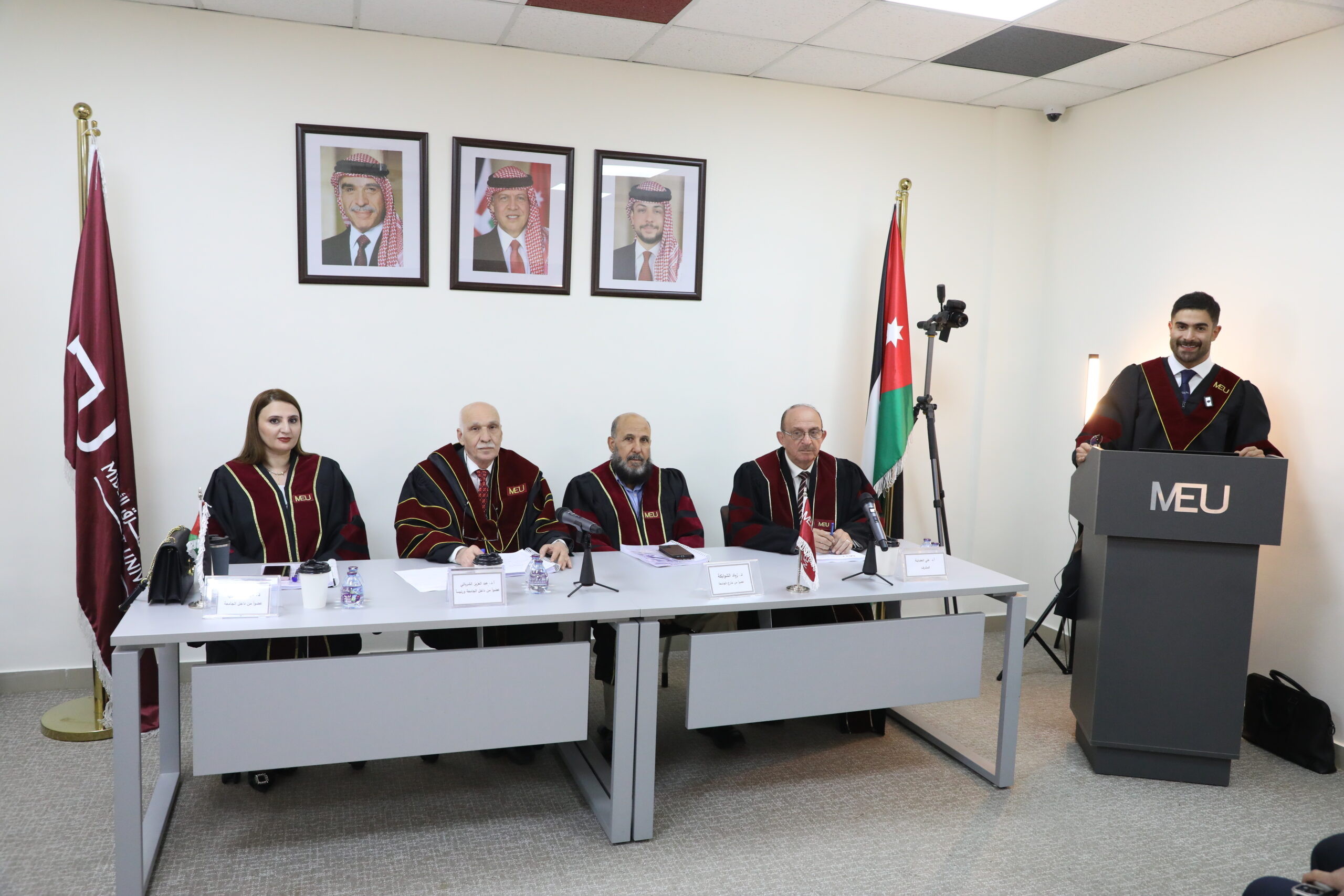تشكلت لجنة المناقشة من الأستاذ الدكتور عبد العزيز الشرباتي عضوًا ورئيسًا، والأستاذ الدكتور علي العضايلة مشرفًا، والدكتورة دينا الخضري عضوًا، والدكتور زياد علي الشوابكة عضوًا من خارج الجامعة (جامعة البلقاء التطبيقية).