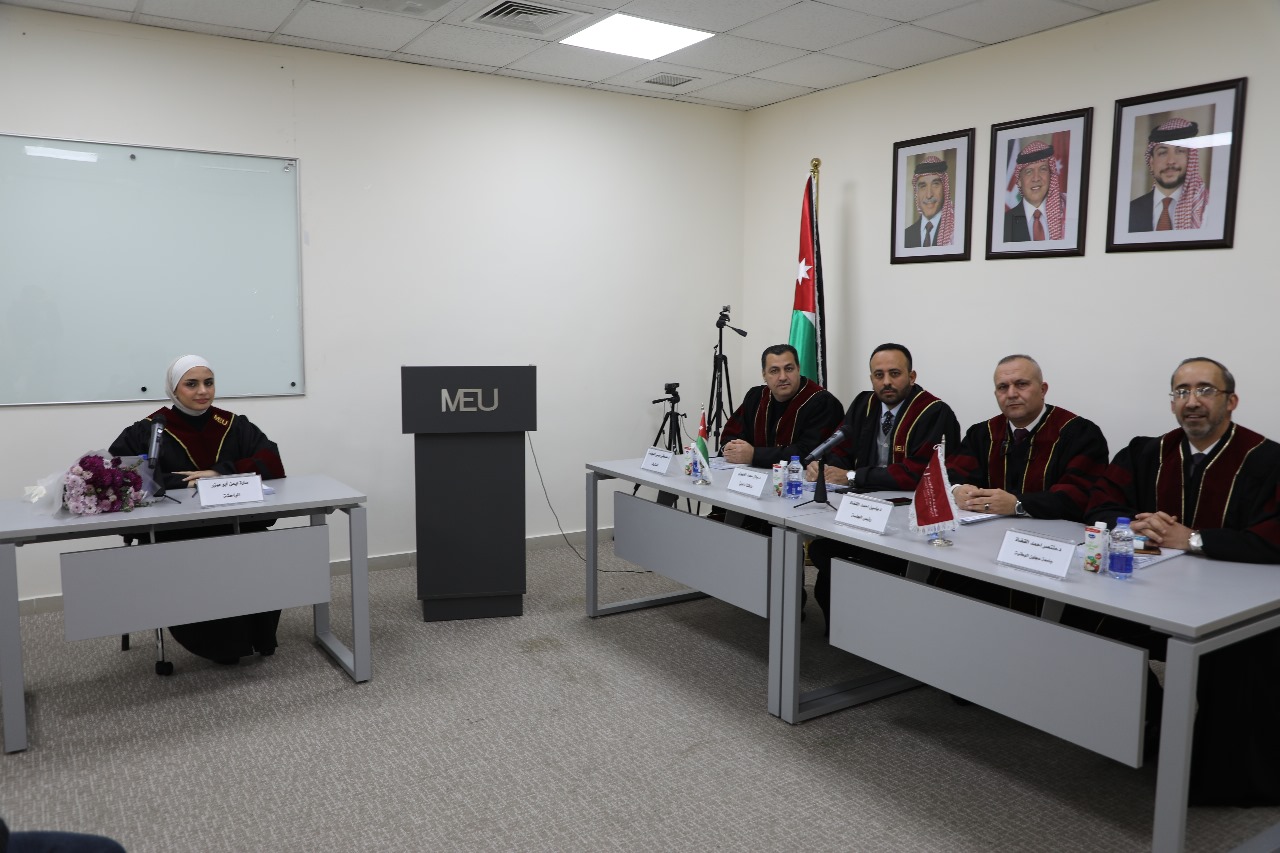 تشكلت لجنة المناقشة من الدكتور ياسين القضاة عضوًا ورئيسًا، والدكتور مصطفى العجارمة مشرفًا، والدكتور جلال القهيوي عضوًا، والدكتور منتصر أحمد القضاة عضوًا من خارج الجامعة (جامعة عجلون الوطنية).