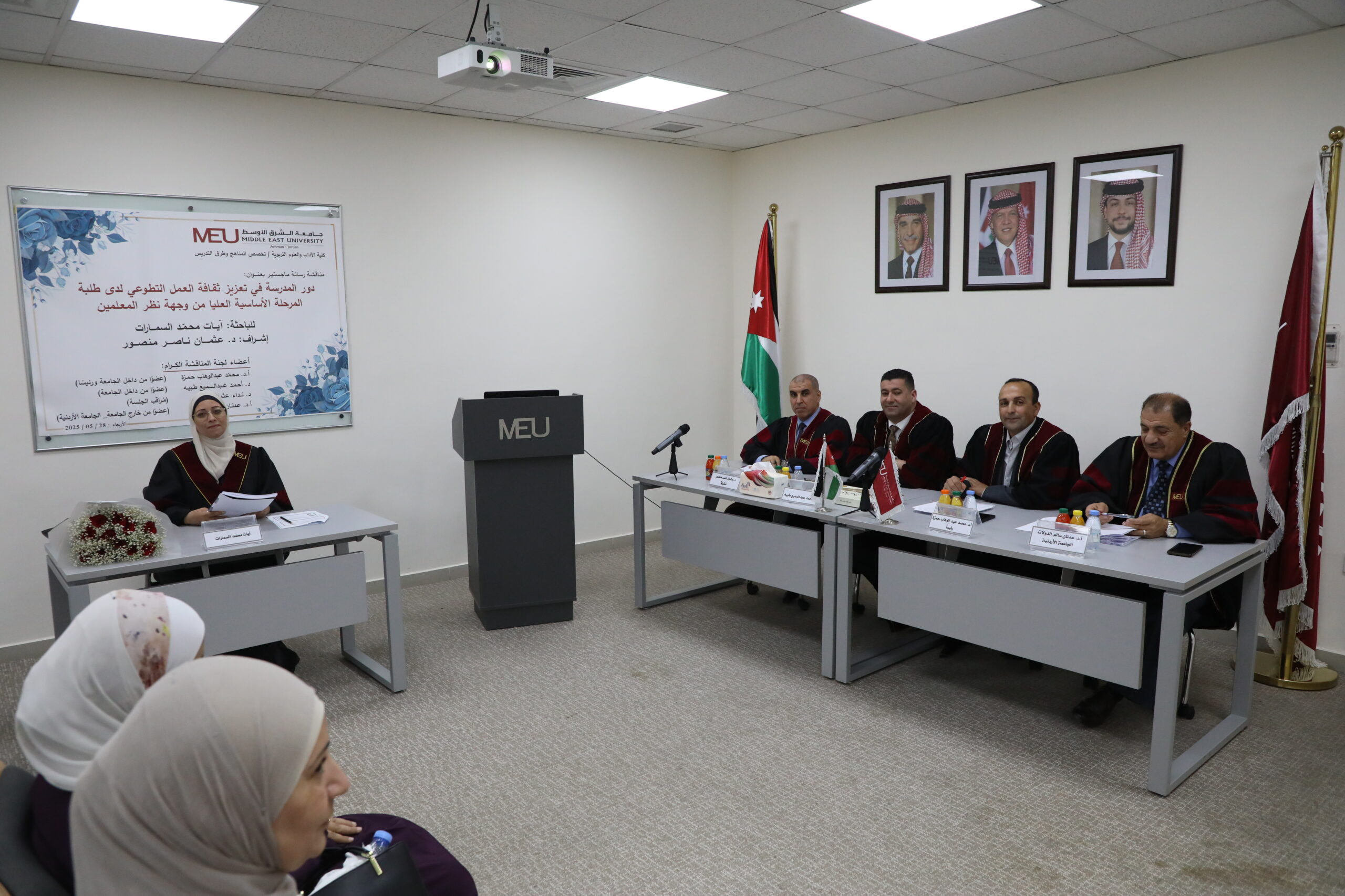 عمّان- نوقشت في كلية الآداب والعلوم التربوية بجامعة الشرق الأوسط رسالة ماجستير، بعنوان: دور المدرسة في تعزيز ثقافة العمل التطوعي لدى طلبة المرحلة الأساسية العليا من وجهة نظر المعلمين، للطالبة آيات السمارات، والتي هدفت إلى التعرف على دور المدرسة في تعزيز ثقافة العمل التطوعي لدى طلبة المرحلة الأساسية العليا من وجهة نظر المعلمين.