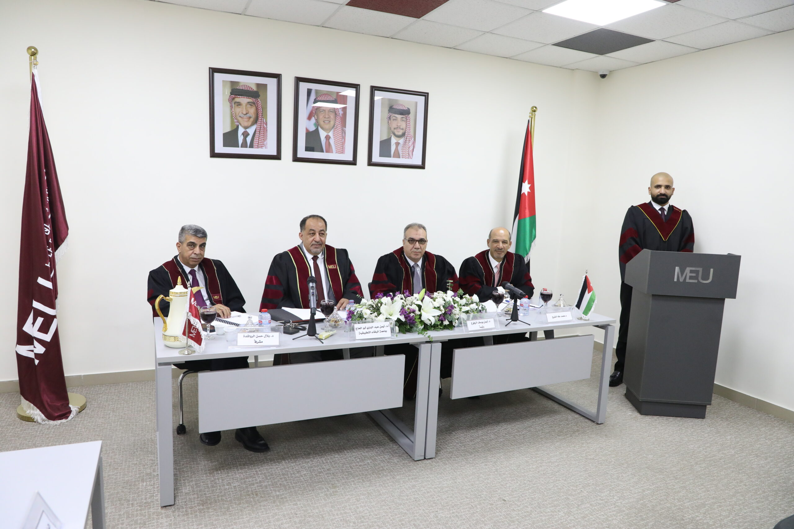 تشكلت لجنة المناقشة من الدكتور أيمن الرفوع عضوًا ورئيسًا، والدكتور بلال الرواشدة مشرفًا، والدكتور محمد الفليح عضوًا، والدكتور أيمن عبد الباري أبو الحاج عضوًا من خارج الجامعة (جامعة البلقاء التطبيقية).