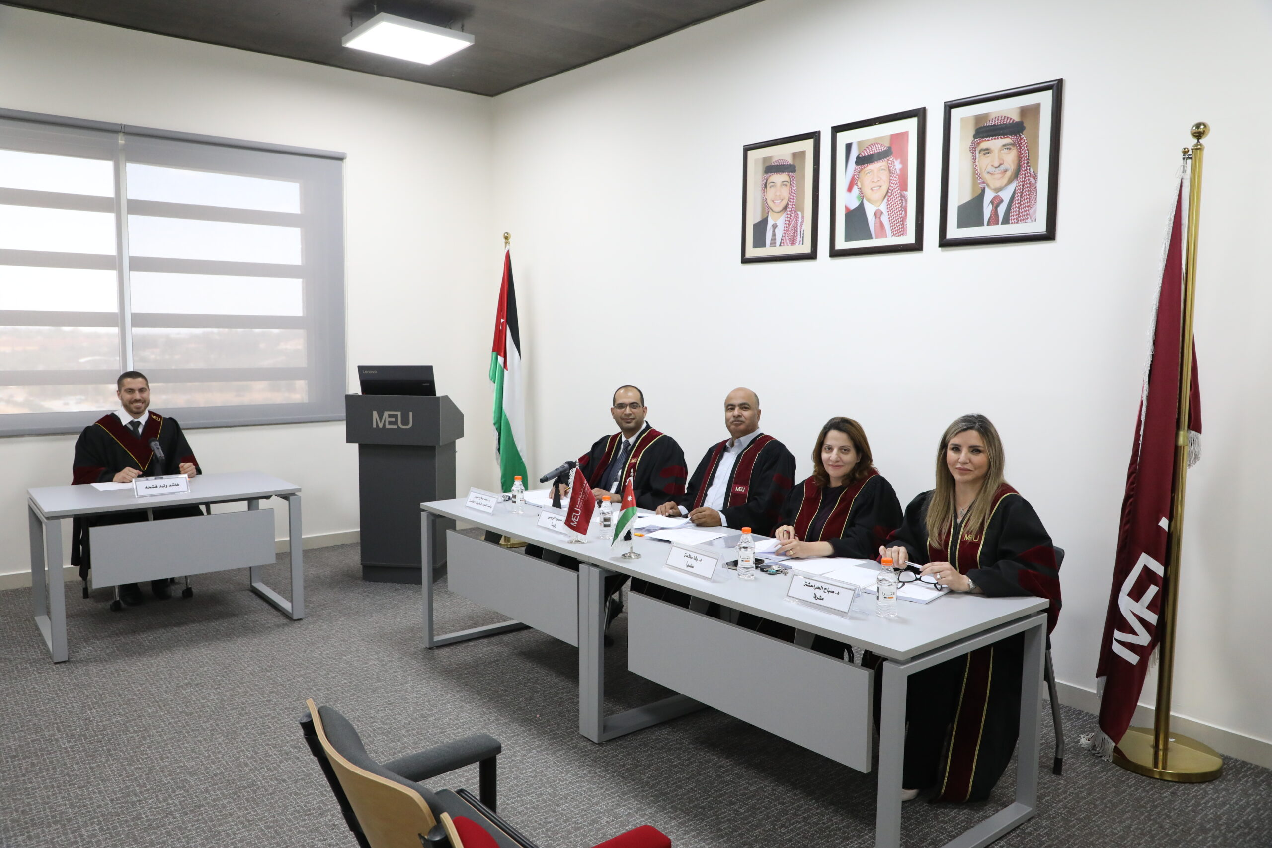 تشكلت لجنة المناقشة من الدكتور محمود الرجبي عضوًا ورئيسًا، والدكتورة صباح حراحشه مشرفًا، والدكتورة رشا سلامة عضوًا، والدكتور أحمد صلاح حيدر عضوًا من خارج الجامعة (جامعة العلوم التطبيقية الخاصة).