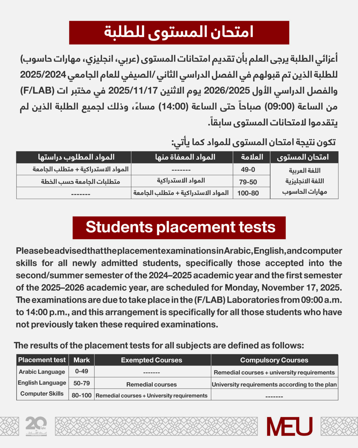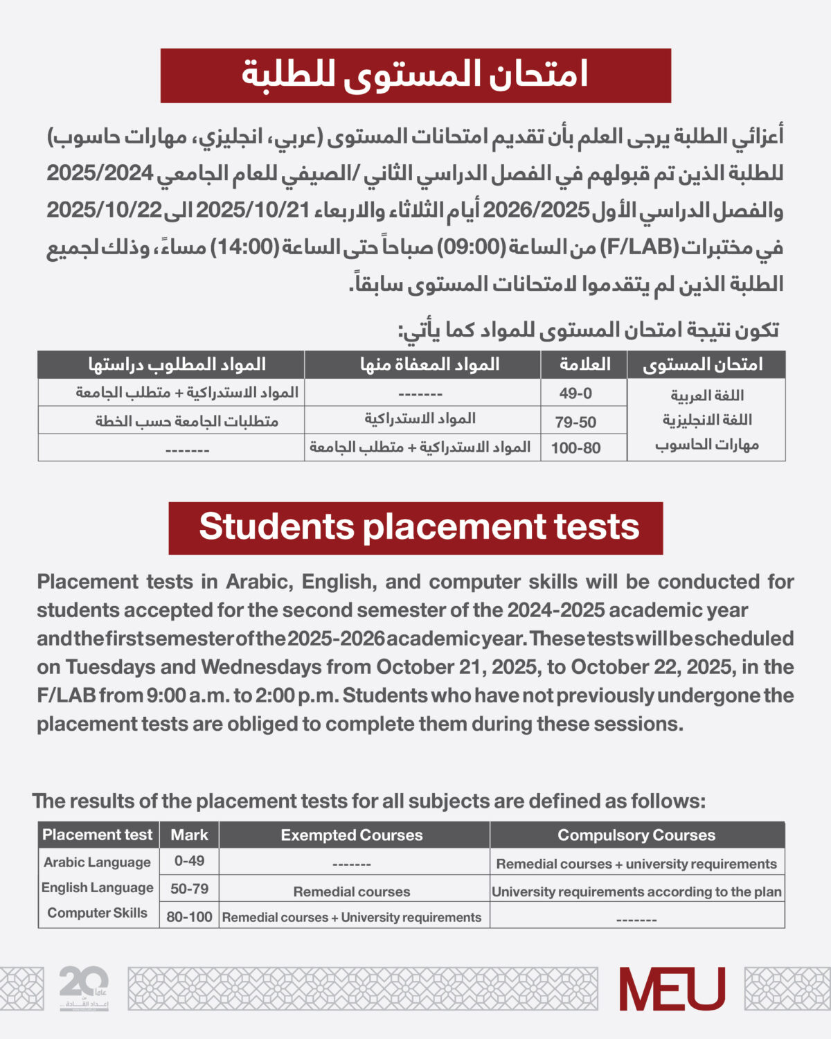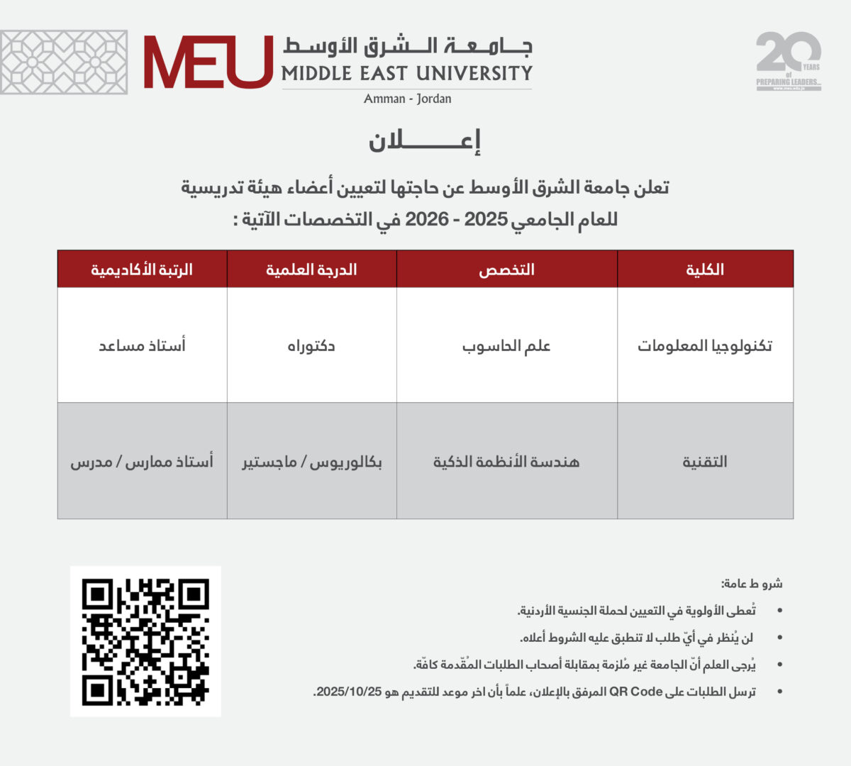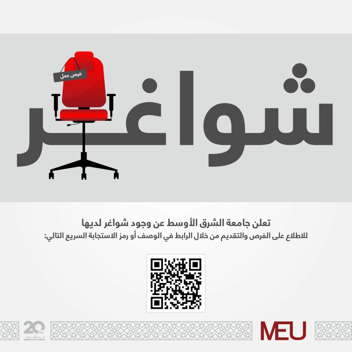 تعلن جامعة الشرق الأوسط عن توفر الشواغر التالية https://job.meu.edu.jo/?page_id=4105