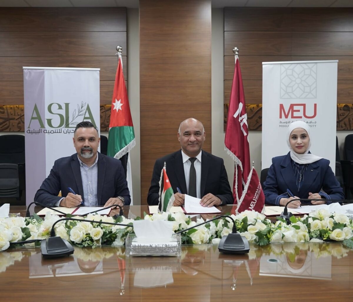 وقّعت جامعة الشرق الأوسط اتفاقية شراكة استراتيجية مع اللجنة التنفيذية لمؤتمر الشباب المحلي للتغير المناخي LCOY JORDAN 2025، والمكوّنة من جمعية أرض السنديان للتنمية البيئية ومركز حكاية لتنمية المجتمع المدني، وذلك بهدف تنظيم واستضافة فعاليات المؤتمر في حرم الجامعة خلال شهر أيلول المقبل. وتهدف هذه الشراكة إلى دعم جهود الشباب الأردني في مواجهة التحديات المناخية،