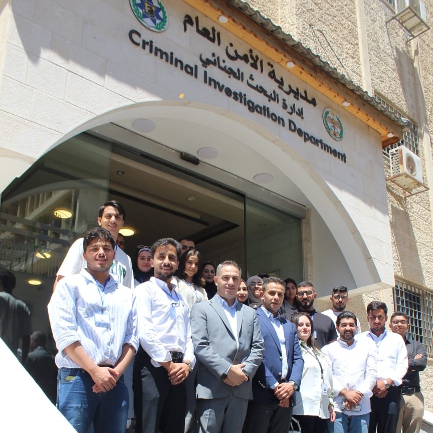 The Legal Clinic Club, operating under the Deanship of Student Affairs in collaboration with the Faculty of Law, organised a study visit to the Criminal Investigation Department of the Public Security Directorate. The visit’s primary objective was to familiarise students with the pivotal role the Department undertakes in the investigation, inference, and inquiry into crimes
