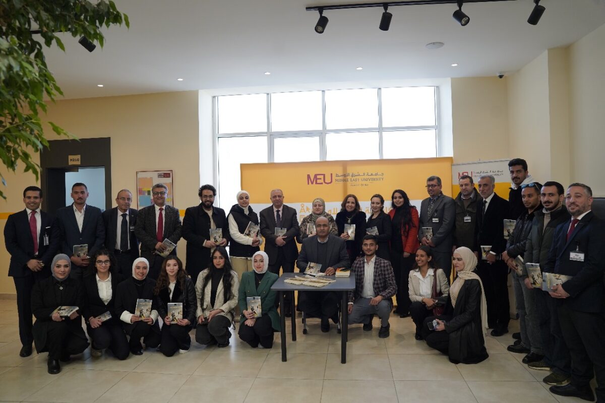 Dr. Al-Rajbi from the Faculty of Media at the Middle East University launches his new novel at a book signing.