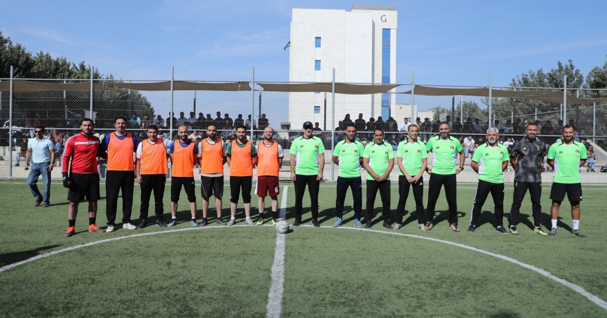 A sporting event was organised by Middle East University and comprised a series of five-a-side football matches, which were of a friendly nature. Teams from the Jordanian International Players’ Cultural Association and the Greater Amman Municipality participated, alongside teams representing the university’s staff and students. The participating Jordanian football stars demonstrated exceptional skills, which were