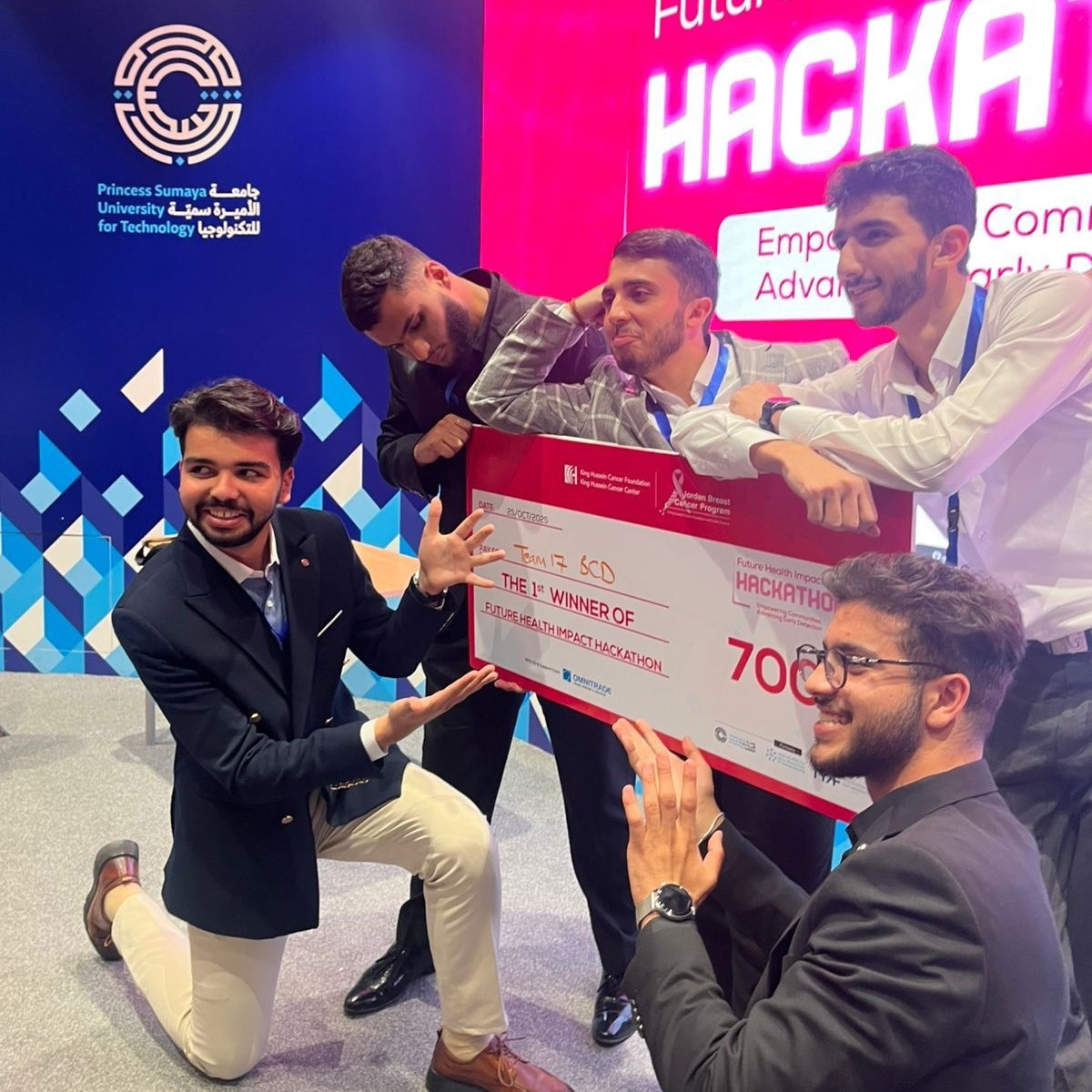 The ‘AI Medical Hub’ team from Middle East University (MEU) was awarded first place in the Future Health Impact Hackathon. This event was organised collaboratively with the King Hussein Cancer Center (KHCC) and the Jordanian Breast Cancer Programme (JBCP), and in partnership with the Queen Rania Center for Entrepreneurship, as part of the Global Entrepreneurship