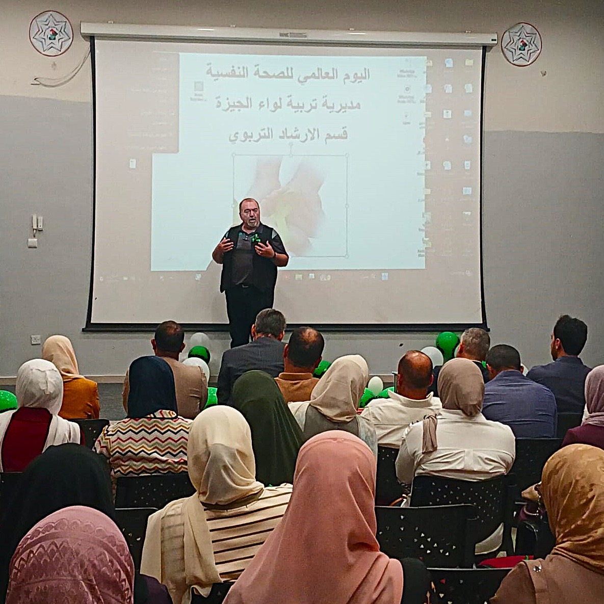 Middle East University participated in a celebration organised by the Al-Giza District Education Directorate to mark World Mental Health Day. The event witnessed the attendance of a selection of educational and counselling staff, a cohort of students and mentors, and representatives from the participating educational institutions. The university was represented by the Assistant to the