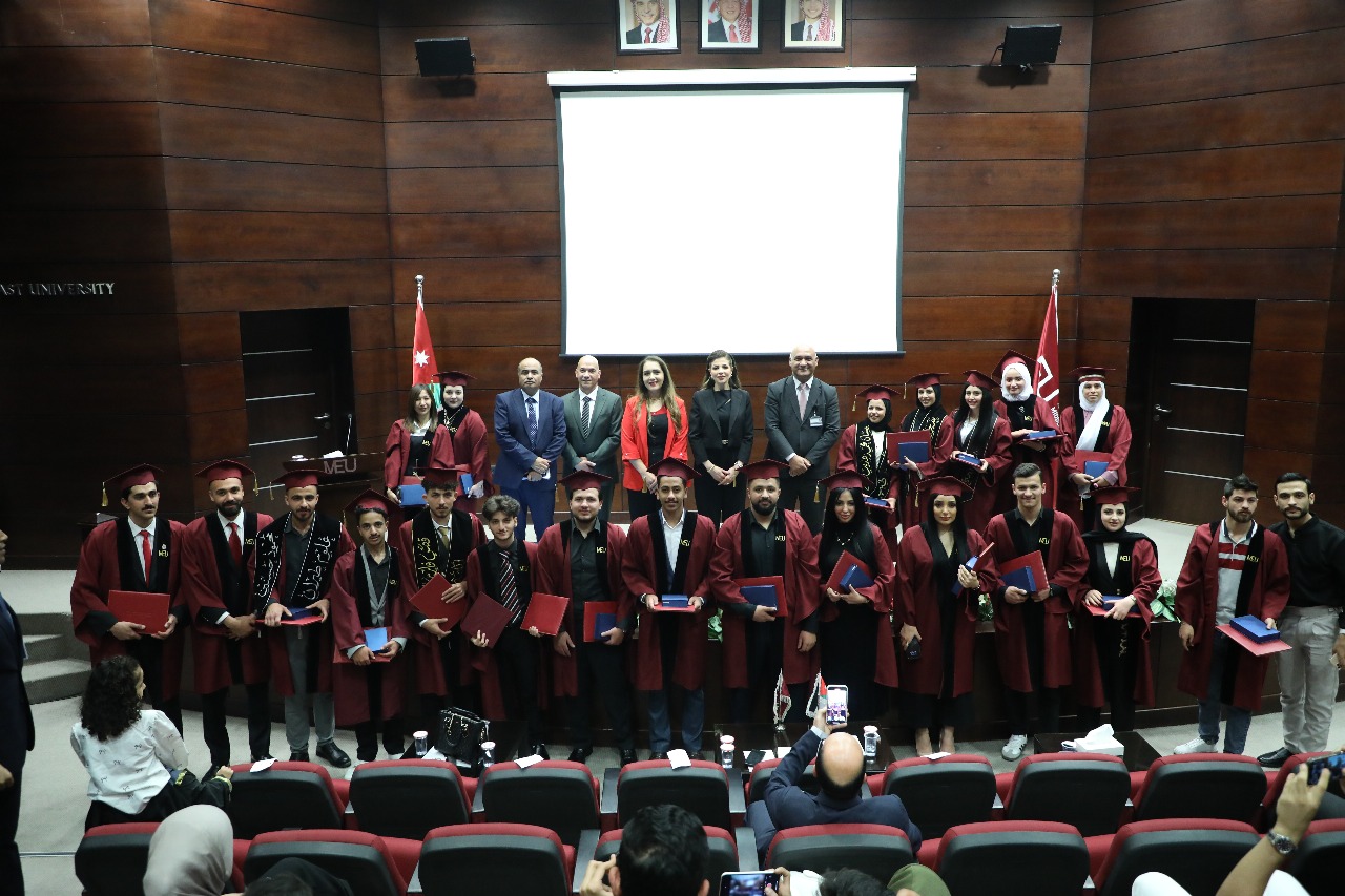 The President of Middle East University, Prof. Salam Khalid Al-Mahadeein, presided over the graduation ceremony of a new cohort of students of training diploma programmes in three disciplines, namely the Diploma in Airport Management and Aviation Sciences, the Diploma in Medical Records and the Diploma in Hybrid Vehicles.